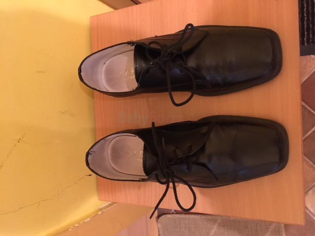 Predám chlapčenské spoločenské kožené topánky, veľkosť 35 (syn ich nosil aj keď mal nohu 37), nosené iba príležitostne. Čierne.